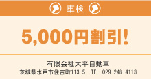 『車検が5,000円割引』と『初めてのご利用で車検1,000円割引!』は一緒にご利用いただくことができます。